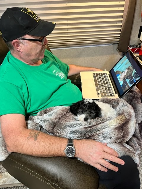 These are our new Camp Hosting friends Kim and Ralph (Loop 2) and their sweet Schnauzer, Toby. Toby showed Teddy the ropes on how to play. It was really nice for Teddy to get some socialization with another dog. Very important. The Morgans have gone back home to Florida, and they are missed, all of them!